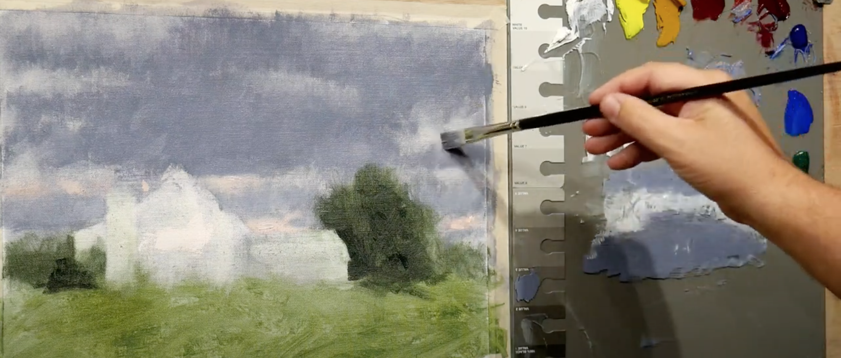 In this workshop, you'll learn how to paint convincing summer greens and dark storm clouds that still retain proper value masses for a realistic-looking country landscape.